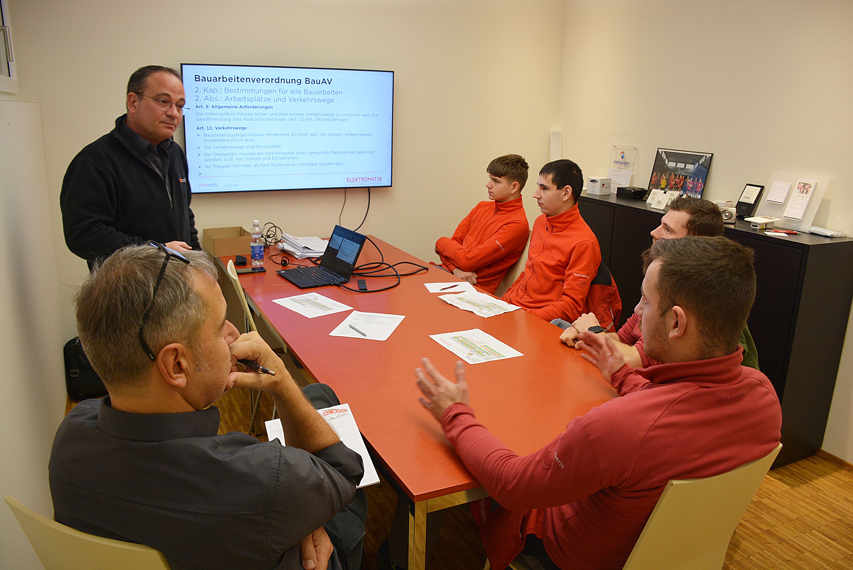 Am Donnerstag, 7. Dezember 2023 legte das Team der ELEKTROMATIK AG ihr Werkzeug nieder, um sich an der internen Weiterbildung auf den neusten Stand im Bereich Sicherheit am Arbeitsplatz und Gesundheitsschutz, sowie Maschinen- und Werkstoffkunde und Mess- und Prüfprotokolle zu bringen.